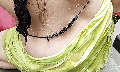 femme de maison indienne se baignant en soutien-gorge