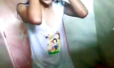 Indian college girl nailing in public shower