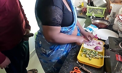 couple indien romance dans la cuisine - saree romp-saree soulevé et le cul giflé