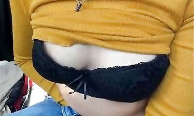 危险的公共他妈的在车-大胸部迪沙几乎抓住了邻居